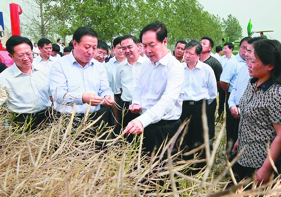 5月27日,省委书记张宝顺深入滁州市全椒县襄河镇八波村辉隆现代农业示范园,调研指导夏粮抢收,现场检查秸秆禁烧工作。记者徐国康摄