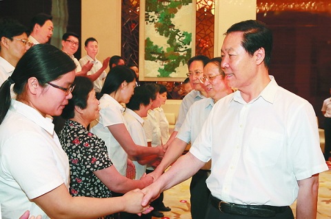 6月30日,省委书记张宝顺、省长王学军等省领导在合肥稻香楼宾馆亲切会见了被追授为“全省优秀共产党员”称号同志的亲属代表和参加纪念建党93周年座谈会的先进典型代表。