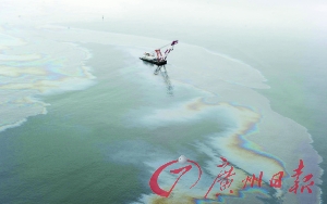 记者乘船在污染海域看到,爆炸不仅造成了附近地区空气污染,而且有一定数量的原油流入大海,被海风吹起的海浪都呈现明显的黑褐色,被污染海域一眼望不到边。