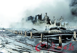 昨晨火势基本扑灭但部分原油泄漏入海 大火或因外籍油轮违章卸油所导致