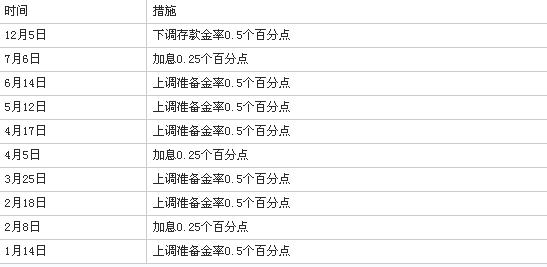 今年历次货币政策调控