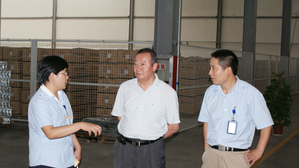 我会会长助理、合肥海毅精密塑业有限公司总经理助理戴耀花陪同我会领导顾问徐景仁参观考察公司车间