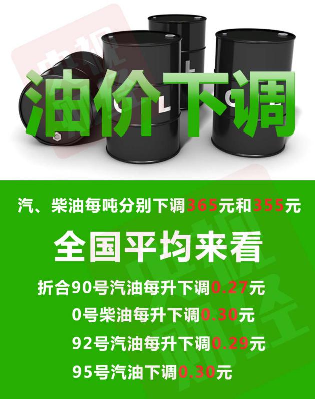 本次油价调整,汽油每吨下调365元,柴油每吨下调355元。全国平均来看,折合90号汽油每升下调0.27元,92号汽油每升下调0.29元,95号下调0.30元,0号柴油每升下调0.30元。按一般家用汽车油箱50L容量估测,加满一箱92号汽油将少花14块5毛钱。