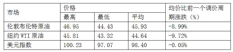 记者从发改委获悉,本轮成品油调价周期内(11月3日-11月16日),受原油产量和库存大幅增加、欧佩克落实限产计划不明朗和美国总统选举影响,国际市场原油价格震荡下降,布伦特、WTI原油期货平均价格比上轮下降9.36%。