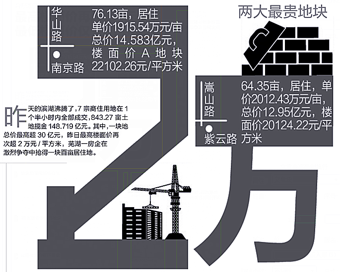 合肥滨湖区拍卖七块地 最高楼面价再超2万最低仅7005元
